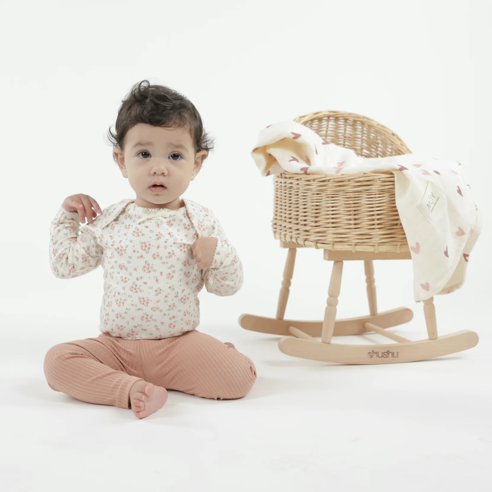 אנחנו מאמינים המיטה לבובה עשויה מחומרי גלם טבעיים באיכות הגבוהה ביותר המבטיחים עמידות לאורך שנים והופכים את המוצר לבר קיימא. המיטה קלועה מענפים של עץ ערבה המקולפים מקליפתם וכך מתקבל הצבע הבהיר של הענפים מהם מיוצרת המיטה.